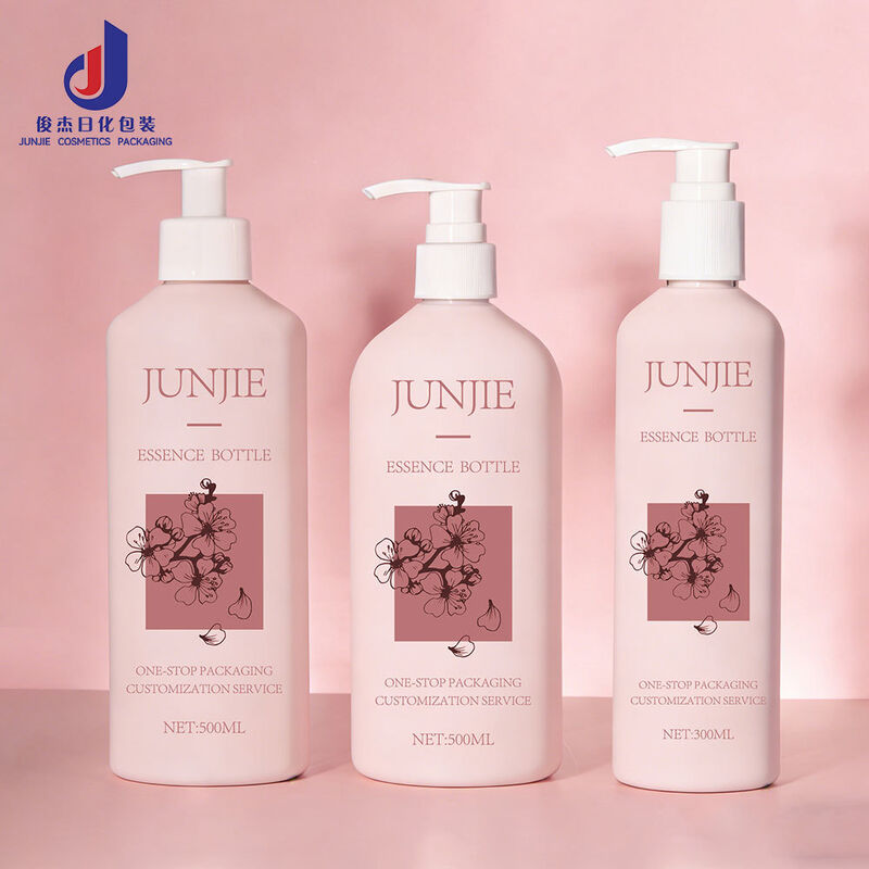 샴푸, 로션 및 다양한 화장품을 위해 디자인된 500ml 및 300ml 플라스틱 펌프 병.